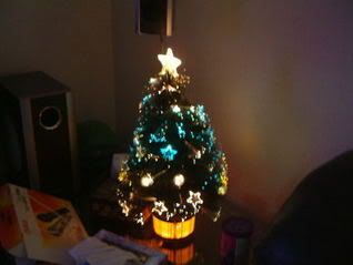 cute x'mas tree at sy's hse...it changes colour in e v nice wae =D mesmerized mi n yz lol