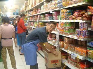 haha...todae went to pei xx go toy r us interview...meet 12.30 thn go ljs eat thn she go...in e end they sae not hiring so short term one...-.-...aft tt we go walk arnd tm n cs n took neoprints...lolz...they turned out ok la...haha..thn we go ws ntuc find spence n jx...it was still long b4 they start work..so we went to walk comics connection n go library read book..lolz...whn we reach ntuc..e first one we spotted was a jx in his apron...lol...thn a 4e guy...which xx go n tok to...haha she's becoming joel...=D...aft tt thn see spencer...thn use mi cam take jx n spence doing work...lol...see e pics below =P