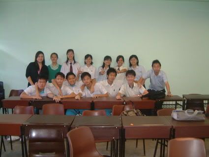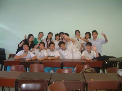rarrhx...todae go sch jus nice latee...e autie close e door right in front of our eyes...na li huii...thn she still open for e cher to go in..zz..hmm..thn got chem prac...wheee...ahs students rox!we finished 1st..haha!thn got chi...chat wif mai lao shi...thn she ask me join drama...o.o..hmm..haha..e other part of e class in e other chi class joined us..3 or 4 of them onliee..lolx...thn we took photo wif mai lao shi..in our chi class..onli one guy from 06S05 turned up..haha!our class almost all here...i tink this part of e class shld be all here..e other half almost all pon..haha..aft tt me, jz, mich, gladys, joanne, xin ni, hoyin, edwin n jelvin ate at mac...thn every1 went hm n those who dun wan go hm..lyk me, jz n hy..went ws...haha..thn i saw bryan, geraldine n siyao...hmm..n we were wif hy's siglap fren too..thn he same class as rachelle n yingqi..haha..so qiaox..thn aft awhile he haf to go settle his sch fees thingie so he n hy went off..n he wear my badge..ni forgot to take his class manager badge!haha..oh ya now i noe got 2 ger de jiaqi..lol..one is hy's tw fren who went usa 2 yrs ago n one is edwin's sis..haha...thn me n jz went to meet mi class de ppl at tamp to eat lunch..tho many didnt eat...thn me xx, jz went walk walk..n whn we were abt to go back..we saw fred n glenn..hahhaa..thn chat for awhile