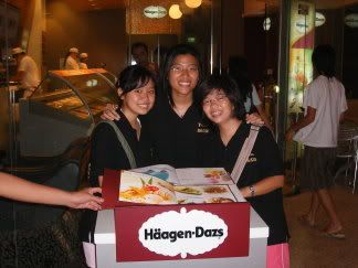 aft tt me, ken, jelly, mich n jz went peter's hse plae mahjong..hahah...i won 2 times..yayy hahaha...thn watched one epi of bleach one epi of dn angel..jel went off at 5 liddat i tink..haha 7+ we decided to go haagen-dazs eat ice cream...jz n mich share, me n peter share thn ken share wif himself lolx...ate cookies n cream, strawberry chessecake n chocolate chocolate chips...nicee haha..thn e wad belgium mocha drinkk..haha oso nice..but so ex...cryy..thn took alot alot photos..hahah lyk nv go haagen-dazs b4 liddat...haha a grp of weird noisy tourist -.-"..below are some photos =D siann...climbing stairs sux whn u got muscle ache...haii climb so much stairs la..even whn going hm..must cross 2 overhead bridge...criesss